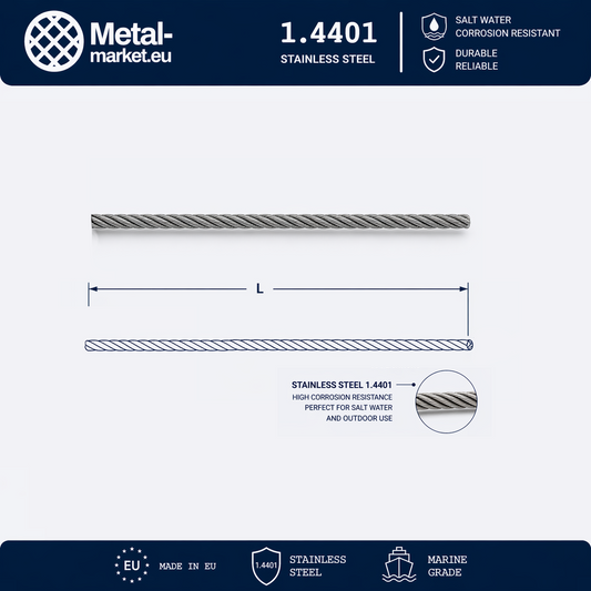 Edelstahl Drahtseil nach Maß (1.4401 V4A) – Lose & Lose – Ø 1–10 mm – konfigurierbar