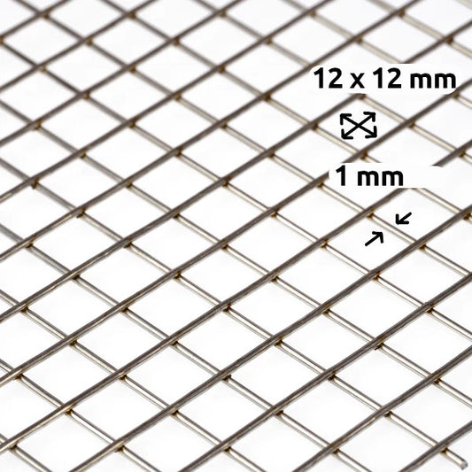 Rete per topi, barriera contro le talpe, rete per conigli zincata a caldo, maglia 12 x 12 mm, spessore filo: 1 mm, su misura.