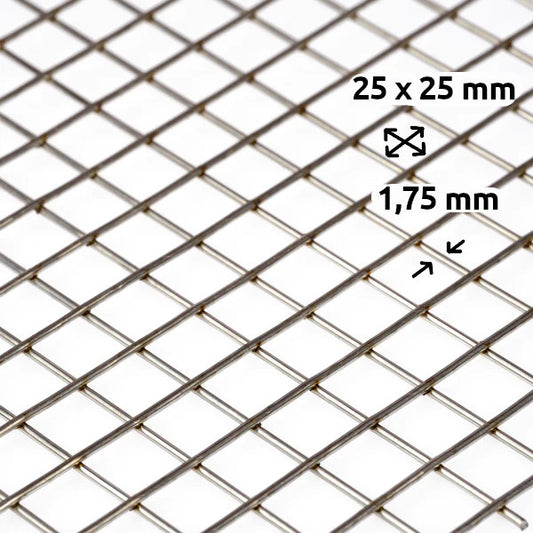 Rete saldata zincata a caldo, maglia 25 x 25 mm, spessore filo: 1,75 mm, su misura.