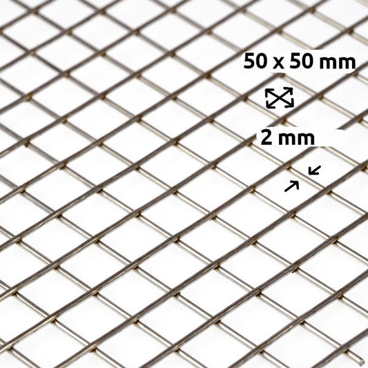 Rete saldata in acciaio inox, maglia 50 mm, spessore filo 2 mm V2A 1.4301 su misura